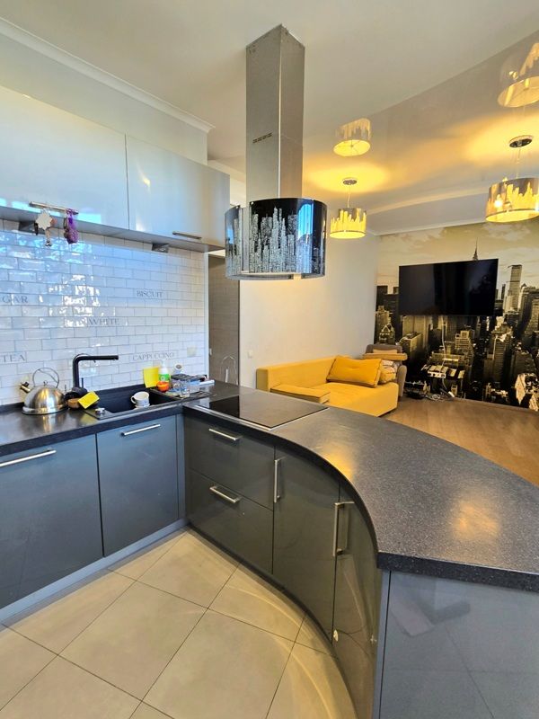 Продается 2 комнатная квартира с современным объединенным пространством кухней и комнатой, по планировке была трехкомнатная квартира, в г. Раменское, Северное шоссе, дом 12, на 16 этаже/20 этажного монолитного дома 2013 года постройки. Площадь квартиры 77.2 кв.м.(без учета двух лоджий), Квартира распашного типа, комнаты 13 кв.м./ 15.35 кв.м., на разные стороны дома, комнату 14,65 кв.м. объединили с кухней 12,2 кв.м., получилась современная кухня-гостиная 27 кв.м., удобное пространство для жизни и приема гостей, два санузла, две застекленные лоджии, (планировка в разделе фото). Квартира с ремонтом, меблирована, кухонный гарнитур премиум-класса со встроенной техникой (варочная панель, посудомоечная машина, духовой шкаф, свч печь, кофе-машина, вытяжка), шкафы купе, кондиционеры, бойлер на случай отключения горячей воды и многое другое- остаются в подарок новому собственнику, окна ПВХ. Высота потолка 3 метра.